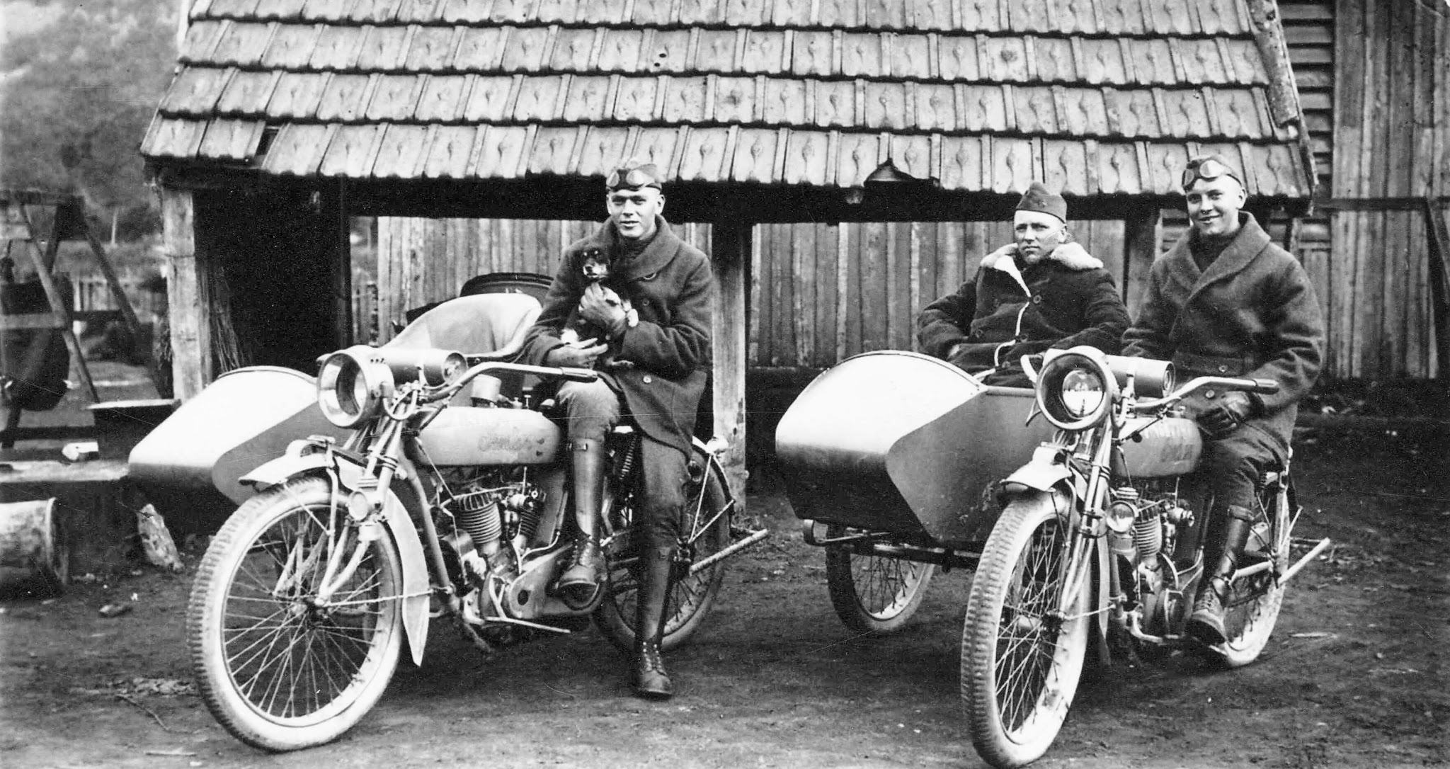Homer Newton Batson (left) was a dispatch rider with the Army’s Motor Mobile Infantry. Batson was born in Transylvania County but moved to California with his family as a teenager