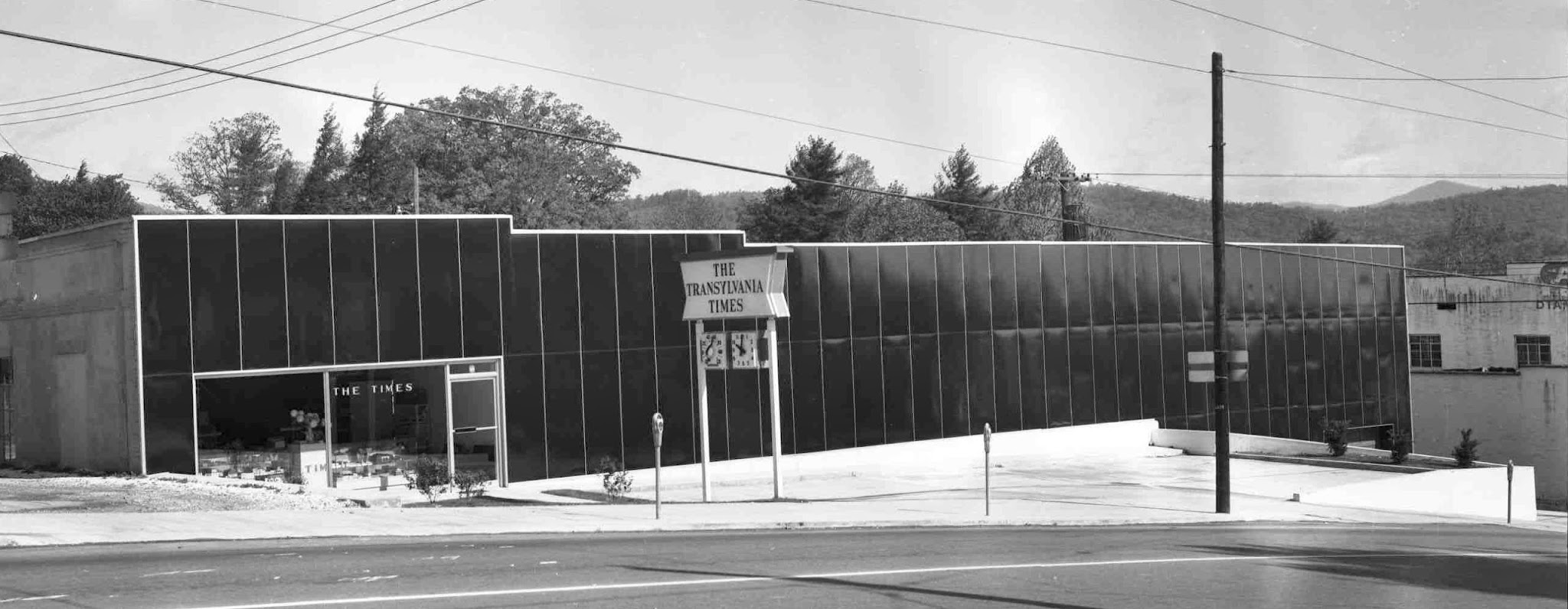 Transylvania Times modern facility on North Broad St., 1966. In 1966 The Transylvania Times renovated the former McCrary Auto on N. Broad St. for their new facility. The large marquee