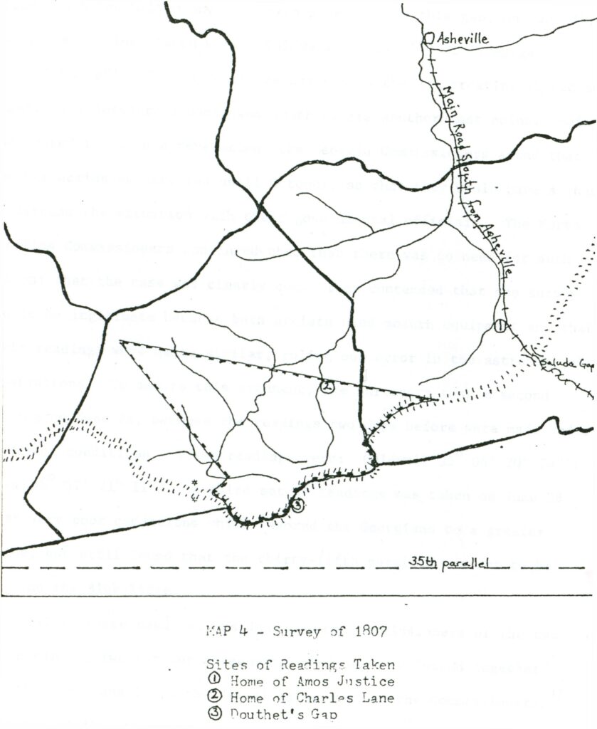 Not until 1805-06 was it finally clarified that both states thought the 35th parallel to be their natural boundary. North Carolina’s insistence on the land grant provision had been due to Georgia assuming the Kilpatrick line as the boundary, which NC knew had been intended to be well north of the line of latitude. With this settled they were finally willing to relent, allowing the matter of grants to be tabled until after the survey.